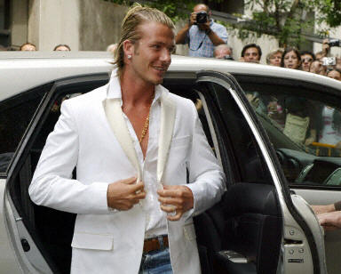 中新網(wǎng)7月2日電 貝克漢姆1日在皇家馬德里體育場(chǎng)與皇家馬德里俱樂(lè)部主席佩雷斯正式簽訂了4個(gè)賽季的合同,從而完成了從英格蘭曼徹斯特聯(lián)隊(duì)到皇家馬德里隊(duì)的轉(zhuǎn)會(huì)。