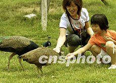 周末的北京野生動物園里游客與動物友好相處。北京旅游禁令解除后,郊區(qū)旅游逐漸復蘇。中新社記者:宋吉河