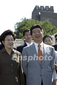 盧武鉉與夫人登上北京八達嶺長城,體驗“不到長城非好漢”的美妙感受。中新社記者:毛建軍