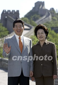 盧武鉉與夫人登上北京八達嶺長城。中新社記者:毛建軍