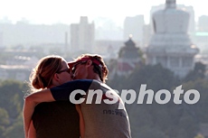 圖:外國游客景山擁吻 北京旅游升溫快
