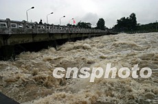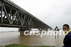 七月十一日凌晨,為了減輕淮河連日降雨給淮河干堤帶來的巨大防洪壓力,安徽阜陽王家壩進(jìn)水閘繼七月三日后再度開啟。中新社記者:盛佳鵬  淮南淮河大橋的交通仍然正常運(yùn)行,未受太大影響。中新社記者:盛佳鵬