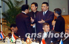 龍永圖與澳門社會事務(wù)及文化司長崔世安交談博鰲亞洲論壇秘書長龍永圖,7月15日在香港主持“新形式下國際旅游合作大會”的部長圓桌會議時,與澳門社會事務(wù)及文化司長崔世安親切交談。中新社記者:洪少葵