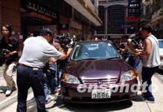 香港大批新聞?dòng)浾撸?月16日聚集在英皇集團(tuán)總部,追訪商人楊受成涉案到廉署助查事件。中新社記者:洪少葵