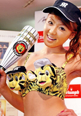 16日,日本內(nèi)衣生產(chǎn)廠勝利國際公司女孩展示可愛Q版老虎圖案的女性內(nèi)衣和棒球系列產(chǎn)品。