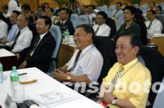 圖為國務院臺灣事務辦公室副主任王在希(右三)、海研中心主任唐樹備(右二)、臺灣新黨主席郁慕明(右一)等出席閉幕會。中新社記者:毛建軍