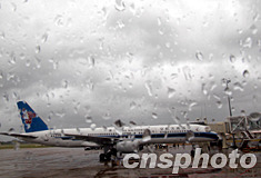第8號(hào)強(qiáng)熱帶風(fēng)暴“天鵝”在海南萬寧市北坡沿海地區(qū)登陸,受臺(tái)風(fēng)影響,二十二日上午進(jìn)出?诿捞m機(jī)場(chǎng)的航班延誤或被迫取消,幾千名旅客滯留機(jī)場(chǎng)。中新社記者:張宇