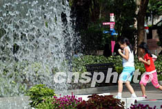 圖:香港小童噴水池邊玩樂(lè)消暑
