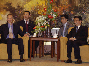 布萊爾拜訪了韓正市長并就雙方共同感興趣的經(jīng)濟(jì)及商業(yè)合作進(jìn)行了討論。雙方主要議題是通過英中合作來加強(qiáng)中國經(jīng)濟(jì)的發(fā)展;研究英國公司在該合作進(jìn)程中所起的作用;討論影響上海及中國其他地區(qū)商務(wù)環(huán)境的有關(guān)事宜。