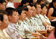 中國新聞界抗擊非典宣傳工作表彰會二十三日在北京人民大會堂舉行,解放軍記者參加會議。中新社記者:張宇