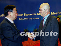 當(dāng)前,世界經(jīng)濟(jì)正處在調(diào)整和恢復(fù)階段。然而,伊拉克戰(zhàn)爭(zhēng)、SARS疫情、美元匯率的波動(dòng)以及最近接連發(fā)生的恐怖事件,給全球經(jīng)濟(jì)的復(fù)蘇帶來(lái)了諸多不確定因素。如何應(yīng)對(duì)這些不利影響,重振世界經(jīng)濟(jì),是世界各國(guó)所共同關(guān)心的問(wèn)題,也是本次經(jīng)濟(jì)部長(zhǎng)會(huì)議面臨的重要課題。我相信,來(lái)自亞洲和歐洲的各位部長(zhǎng)們,將充分利用此次會(huì)議的契機(jī),對(duì)當(dāng)今世界經(jīng)濟(jì)發(fā)展存在的重大問(wèn)題深入交換意見(jiàn),增進(jìn)共識(shí),并積極尋求合作途徑,共同應(yīng)對(duì)挑戰(zhàn),為世界經(jīng)濟(jì)的復(fù)蘇做出積極的貢獻(xiàn)。