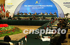 第五屆亞歐經(jīng)濟部長會議七月二十四日正式在大連開幕。來自亞洲的中國、日本、韓國和東盟七國,歐盟十五國和歐盟委員會出席會議。中新社記者:鄭萍萍