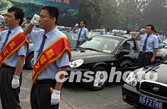 由北京市公安局公安交通管理局等主辦的首汽股份“倡導(dǎo)交通文明,禮讓斑馬線”活動啟動儀式,七月二十四日舉行,儀式上部分司機(jī)代表宣誓。中新社記者:任海霞