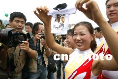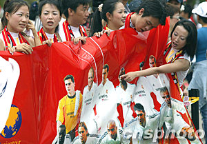 而在皇馬抵達(dá)昆明之前,就有兩位紅塔女工為了歡迎皇馬巨星,用了整整一個禮拜親手縫制二十多件印有貝克漢姆、齊達(dá)內(nèi)、勞爾等舉行頭像的小T恤。今天一早,這兩位女工又隨著大部隊從玉溪趕往昆明迎接皇馬。“能夠親眼看到皇馬的球員就心滿意足了!眱晌慌さ囊蟮共皇呛芨摺