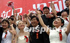 七月二十七日,北京市為抗SARS延誤婚期的五十一對新人舉行了隆重、熱烈的集體婚禮。中新社記者:史利