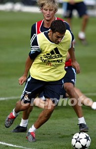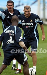 皇家馬德里足球隊(duì)技戰(zhàn)術(shù)訓(xùn)練,主帥奎羅茲在齊達(dá)內(nèi)身后督戰(zhàn)。中新社記者:毛建軍