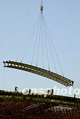 七月底,中國(guó)國(guó)家大劇院施工工程進(jìn)入殼體結(jié)構(gòu)安裝階段,六百噸巨型履帶吊車通過(guò)遠(yuǎn)距離作業(yè),用長(zhǎng)達(dá)一百零八米的“釣線”以“空中釣魚(yú)”的方式將一塊塊長(zhǎng)三十五米的鋼組合梁送到四、五十米的高空,組成鋼結(jié)構(gòu)穹頂。中新社記者:廖文靜