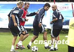 中新網(wǎng)7月29日電 經(jīng)過了頭三天的適應(yīng),在昨天皇馬的訓(xùn)練分組中,剛剛轉(zhuǎn)會而來的貝克漢姆終于被主教練奎羅茲安排進(jìn)了主力一撥。