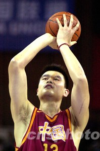 圖:中美男籃熱身賽 姚明場上表現(xiàn)出色