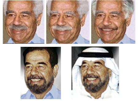 據(jù)路透社報(bào)道,這些照片包括通常蓄髭且深發(fā)的薩達(dá)姆若留胡須、把臉刮干凈、白發(fā)或灰發(fā)的模樣,還有一張為他戴著傳統(tǒng)阿拉伯頭巾的樣子。這些照片都已經(jīng)發(fā)給正在伊拉克全力搜索薩達(dá)姆的軍隊(duì)。