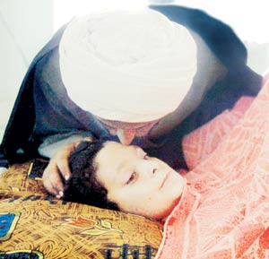 醫(yī)院的人員給了納克霍爾一個口罩和罩衣,然后領她進了一個病房,與這家醫(yī)院其它病房的混亂場面相比,這間病房相當安靜,里面一個婦女坐在一個低矮的床上,而床上一個小男孩兒躺一個骯臟的毯子上,身上罩了一個生了銹的金屬籠子,頭上包著厚厚的白繃帶,他用大大的眼睛靜靜地看著那個婦女,令人心驚肉跳的是他的兩只胳膊從肩膀處就沒有了,下巴以下的身體軀干上有一塊大大的傷疤,被燒成了黑木炭樣。