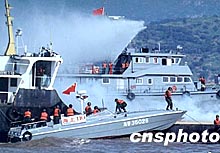福建海警進(jìn)行反劫持及海難救助演習(xí)