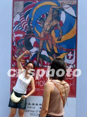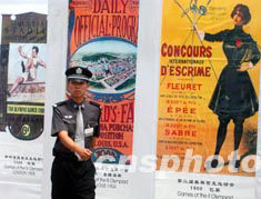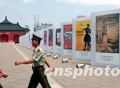 歷屆奧運(yùn)會(huì)會(huì)徽宣傳畫八月三日列陣北京天壇祈年殿前的昔日皇家神路兩旁,迎候神秘的北京2008年奧運(yùn)會(huì)會(huì)徽當(dāng)晚夜幕降臨時(shí)在此大白于天下。中新社記者:賈國(guó)榮