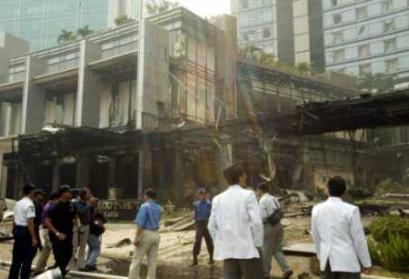 8月5日,印尼首都雅加達(dá)南部的中心商業(yè)區(qū)萬豪酒店發(fā)生劇烈爆炸。周圍幾幢建筑也受到爆炸沖擊。據(jù)印尼警方稱,到目前為止至少有8人在爆炸中死亡,另有103人重傷。(春風(fēng))