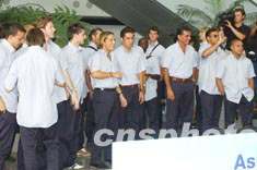 今天下午二時四十分許,驟雨初歇;蜀R隊員乘飛機從東京抵達香港國際機場。二千多名球迷帶著歡迎橫額和鮮花,在機場接機大堂迎候。當一眾球星步出通道時,球迷發(fā)出歡呼和尖叫聲,閃光燈閃個不停。