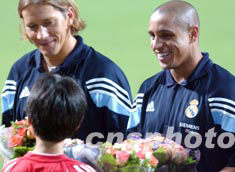 著名球星菲戈、齊達內(nèi)、羅納爾多、貝克漢姆、卡洛斯、勞爾等,向熱情的球迷揮手致意。他們在大堂停留了約十分鐘,然后乘車前往下塌的灣仔君悅酒店。酒店外亦有大批球迷守候。