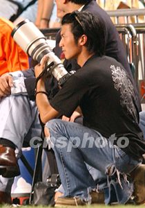 香港明星謝霆鋒,八月八日在香港大球場觀戰(zhàn)西班牙勁旅皇家馬德里對香港聯(lián)隊的比賽,并出動私伙長短炮,充當攝影師拍攝偶像。中新社記者:錢興強