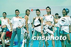 八月九日,新絲路北京模特大賽在北京舉行,一百多名佳麗參加了比賽,在才藝表演中,參賽佳麗展示她們在五分鐘之內(nèi)裁剪出來的時裝。中新社記者:盛佳鵬