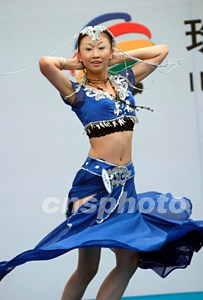 參賽模特表演印度舞蹈。中新社記者:盛佳鵬
