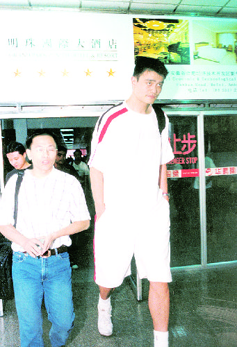 中新網(wǎng)8月10日電 昨天下午3時(shí)35分,合肥駱崗機(jī)場(chǎng)出現(xiàn)了一個(gè)人們熟悉而高大的身影——姚明!