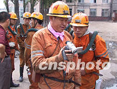 中新社大同八月十四日電(記者張恩)今天下午兩點三十分,大同市礦山救護(hù)大隊副隊長范生元帶領(lǐng)六名礦山救護(hù)隊員,攜帶有關(guān)拍錄設(shè)備深入“八·一一”礦難事故發(fā)生現(xiàn)場井下,為國務(wù)院事故調(diào)查組實地取證。