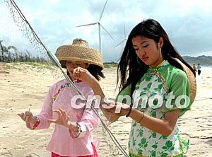 八月十四日,第二屆維可倚南方新絲路模特大賽入圍的三十名選手在汕尾紅海灣進行外景拍攝,靚扮南海魚家女。作者:劉衛(wèi)勇