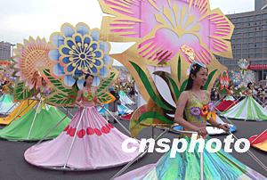第十三屆青島國際啤酒節(jié)舉行盛大的狂歡巡游活動,由青島旅游學(xué)校學(xué)生裝扮的名貴花卉方隊構(gòu)成一幅姹紫嫣紅的美麗畫卷。中新社記者:張煒