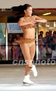 香港迪斯尼樂園邀請奧林匹克花樣滑冰好手關(guān)穎珊到港宣傳,8月18日在太古城冰上皇宮表演精湛技藝,為來港旅客及香港迪斯尼樂園工程打氣。中新社記者:洪少葵