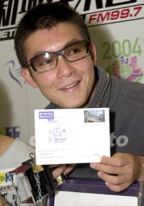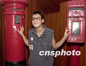 歌星陳冠希8月18日在香港出席新城電臺(tái)與香港郵政合辦《Edison聯(lián)fan集郵Teen》參觀郵政總局活動(dòng),對(duì)兩臺(tái)舊式郵筒頗具興趣。作者:鄧慶樂