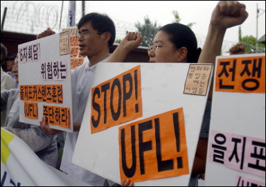 這一演習(xí)立即遭到了部分韓國民眾的抗議,這些民眾高舉著用韓文和英文書寫的“停止舉行乙焦演習(xí)”的醒目標(biāo)語聚集到駐韓美軍總部所在地--韓國漢城龍山美軍基地外,高呼立即停止軍演的口號。(徐冰川/聞新芳)