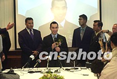 「新濠國際」董事總經(jīng)理何猷龍?jiān)诎拈T區(qū)總部成立儀式上舉行記者會(huì),回答媒體提問。中新社記者李剛