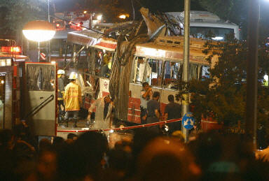 據(jù)當(dāng)?shù)鼐浇榻B,爆炸發(fā)生在當(dāng)?shù)貢r間晚上9時左右,爆炸地點在東、西耶路撒冷的分界線附近,遭遇襲擊的是一輛從耶路撒冷老城開往一正統(tǒng)猶太人社區(qū)的19路公共汽車。由于爆炸發(fā)生在滿載乘客的汽車中部,所以傷亡慘重。這是耶路撒冷最近7年來發(fā)生的最為嚴(yán)重的自殺性爆炸事件。