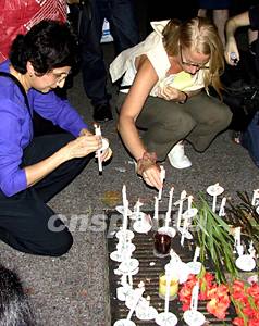 數(shù)百名聯(lián)合國(guó)職員以及一些普通民眾二十日晚間自發(fā)在聯(lián)合國(guó)總部對(duì)面的廣場(chǎng)上舉行燭光追思活動(dòng),悼念十九日發(fā)生在巴格達(dá)的炸彈襲擊事件中的遇難者。中新社記者:趙海燕