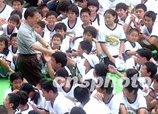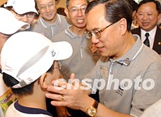 曾蔭權(quán)出席香港少年警訊滅罪夏令營活動,受到少年們的熱烈歡迎。中新社記者:錢興強