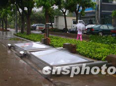 “科羅旺”臺(tái)風(fēng)八月二十五日凌晨橫掃?谑袇^(qū)后,在濱海路兩側(cè)到處是“傷痕”累累的景象。圖為一座帶有空調(diào)設(shè)施的小報(bào)亭被臺(tái)風(fēng)吹得東倒西歪。作者:蔣聚榮