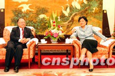 八月二十六日,全國政協(xié)副主席、中共中央統(tǒng)戰(zhàn)部部長劉延東(右)在北京會見了以廖長城為團長的香港律師界訪京團。中新社記者:盛佳鵬