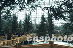 馳名中外的四川省九寨溝旅游勝地旁的甘海子,今夏八月正在森林中興建九寨天堂國(guó)際會(huì)議度假中心。圖為施工中的中心大堂保留著原生態(tài),明年在此舉行世界環(huán)境與發(fā)展論壇時(shí),將好似林中水晶宮。中新社記者:賈國(guó)榮