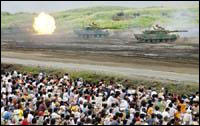 此次演習(xí)以阻止敵人登陸和攻擊為目的。演習(xí)以富士學(xué)校的2000多名學(xué)員為主力軍,出動(dòng)了包括主力坦克“90式坦克”在內(nèi)的60輛坦克和裝甲車、30架戰(zhàn)斗機(jī)以及70門大炮等裝備。裝甲加厚的“輕型裝甲車”在此次演習(xí)中首次亮相。
