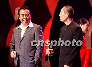 在獎(jiǎng)項(xiàng)評(píng)選時(shí),按照新的評(píng)選章程規(guī)定,本屆評(píng)委會(huì)副主任趙實(shí)代表評(píng)委會(huì)主任徐光春提議為影片《英雄》頒發(fā)“特殊貢獻(xiàn)獎(jiǎng)”!队⑿邸纺芊竦锚(jiǎng)需要按照評(píng)選程序提交評(píng)委投票,頒獎(jiǎng)晚會(huì)上揭曉的最終結(jié)果是《英雄》囊括了包括“優(yōu)秀對(duì)外合拍片獎(jiǎng)”、“合作拍攝榮譽(yù)獎(jiǎng)”以及“特殊貢獻(xiàn)獎(jiǎng)”在內(nèi)的三項(xiàng)大獎(jiǎng)。