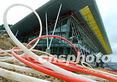 正在四川省松潘縣川主寺修建安裝的九寨黃龍旅游機場候機樓,為中國高原的現(xiàn)代化航空港,將于九月二十八日通航使用。它可?课寮茱w機,滿足年六十萬人次的旅客流量。中新社記者:賈國榮